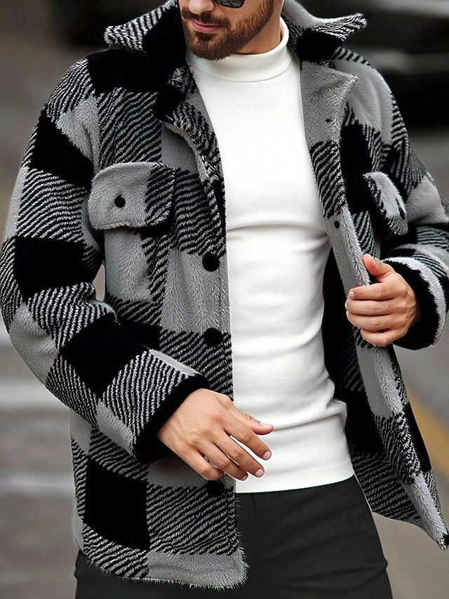 More information about Men's Shirt Jacket Fleece Jacket Casual Jacket Vacation Daily Thermal Warm Pocket Fall Winter Plaid Fashion Classic Lapel Regular Dark Gray Jacket