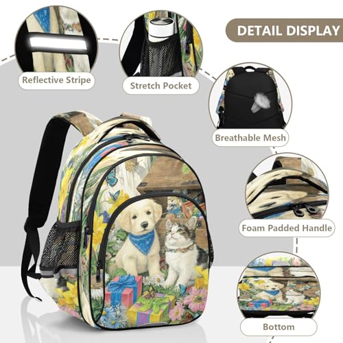 Emelivor Golden Puppy Cat Kids Backpack Toddler School Backpack Book Bag Backpacks Schoolbag for Boys,S 7