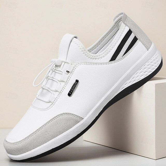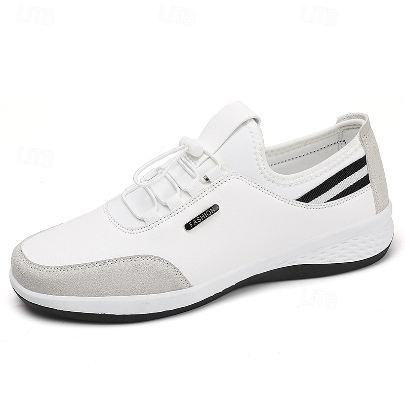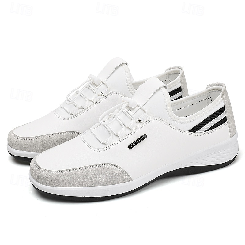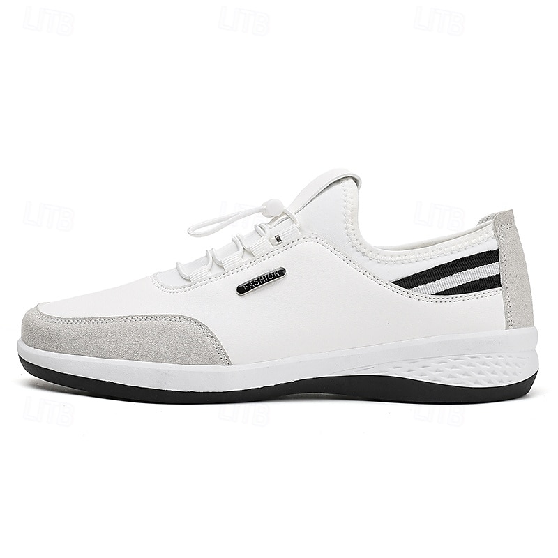 More information about Men's White Mesh and Faux Leather Sports Sneakers – Lightweight Breathable Trainers for Gym, Running and Casual Streetwear