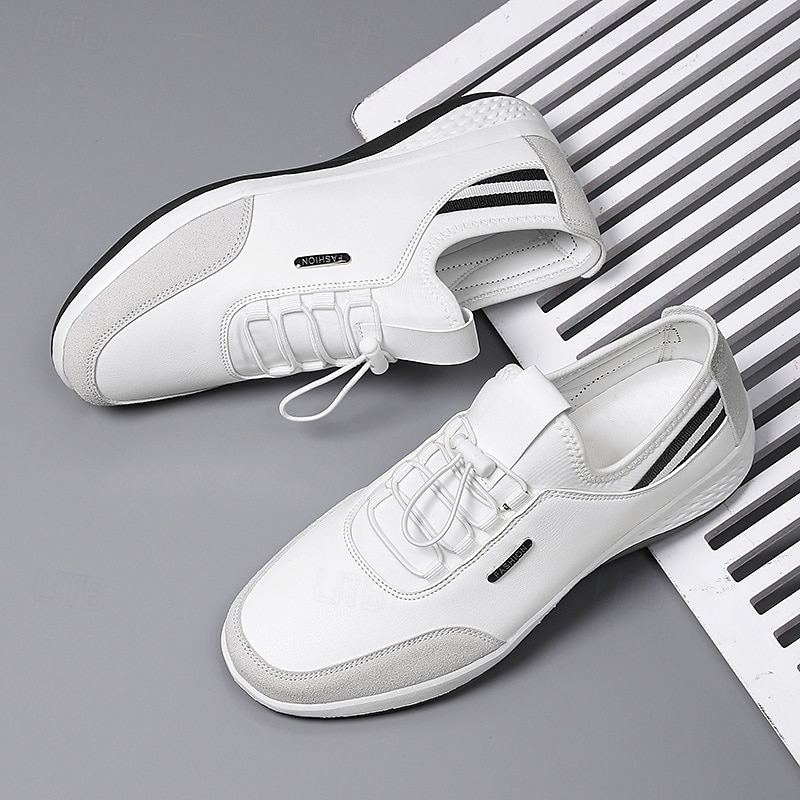 Men's White Mesh and Faux Leather Sports Sneakers – Lightweight Breathable Trainers for Gym, Running and Casual Streetwear 36