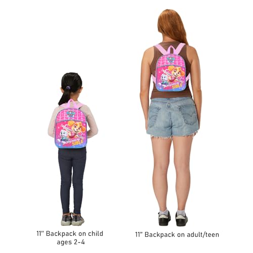 • Paw Patrol Backpack for Toddler Girls measures approximately 11" x 9" x 3" inches -- perfect for preschoolers.