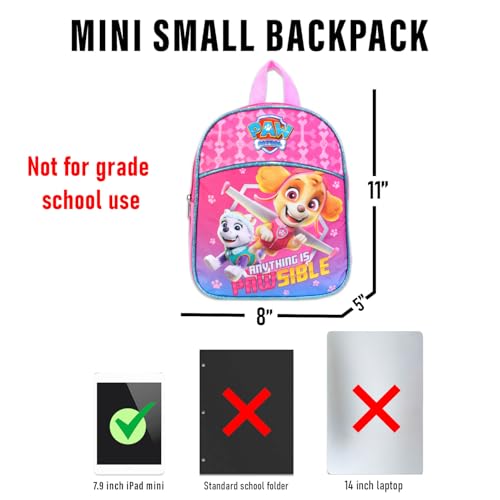 • Paw Patrol Backpack for Girls ~ 3 Pc Bundle With Premium 11" Skye Mini School Bag for Toddlers with Stickers and Tattoos | Paw Patrol School Supplies.