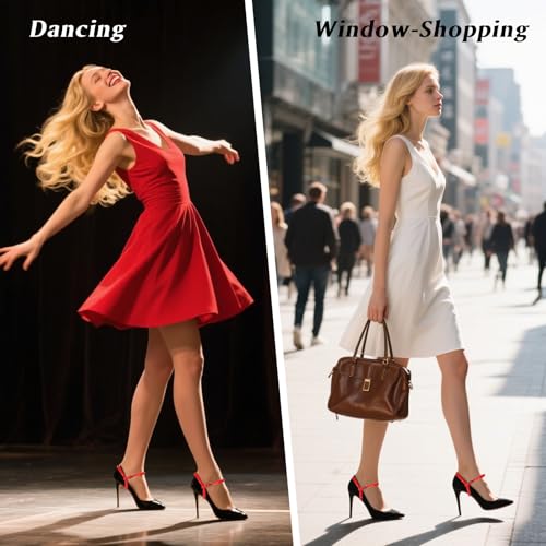 3 Pairs Detachable Heel Straps for High Heels, Adjustable and Elastic Women Anti Slip Shoe Straps for Loose Shoes, Transparent, Black and Red for Vintage and Retro Style Fashion Accessories 7
