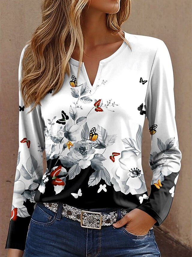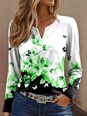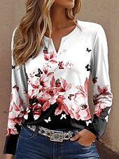 More information about Women's T Shirt Floral Graphic Vintage Stylish Casual Long Sleeve Notched Neck Regular Tops Daily Weekend Print White Red Blue Purple Green Spring Fall Winter