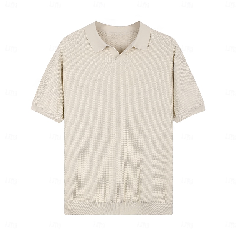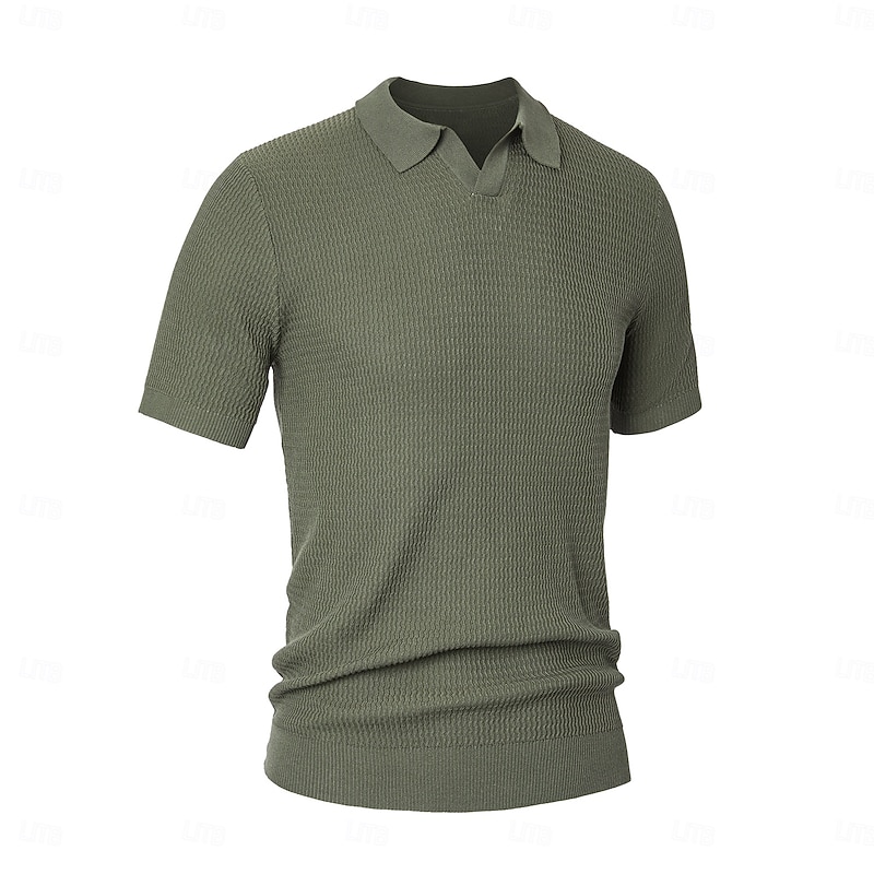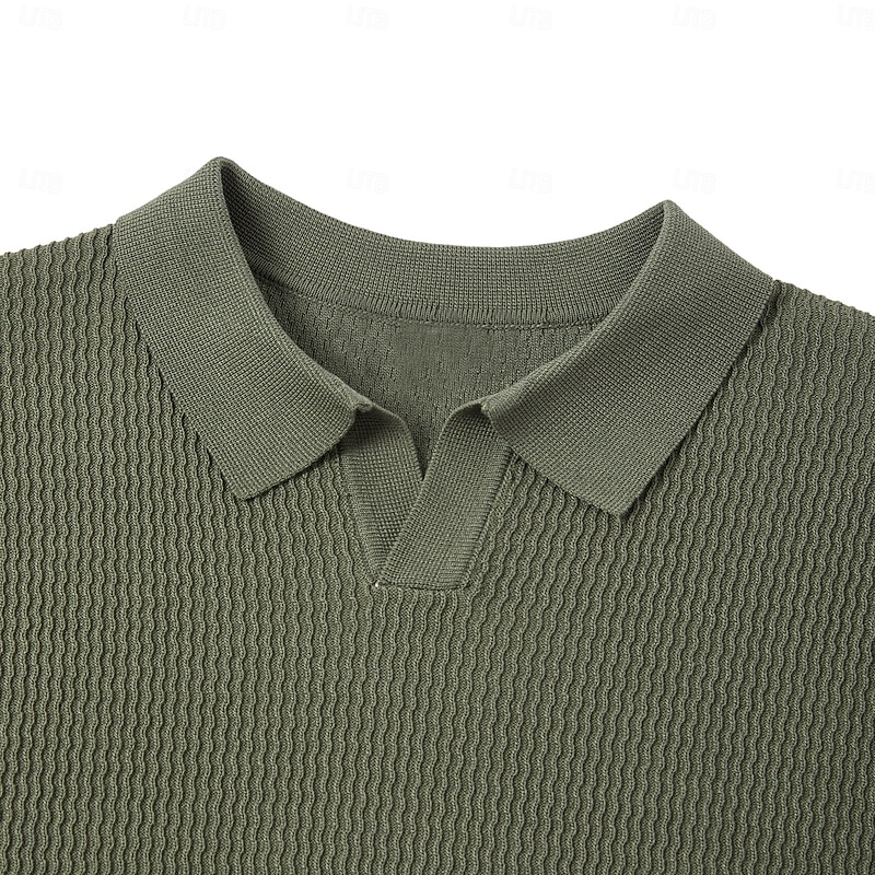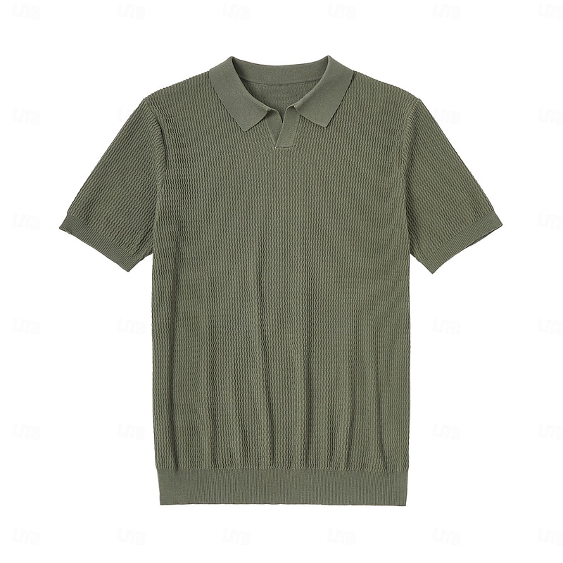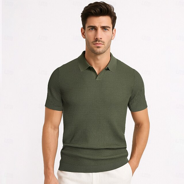 More information about Men's Polo Knit Polo Sweater Business Casual V Neck Short Sleeve Formal Lines / Waves Novelty Summer All Seasons Black White Army Green Beige Coffee Polo