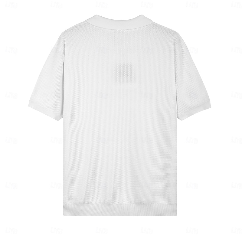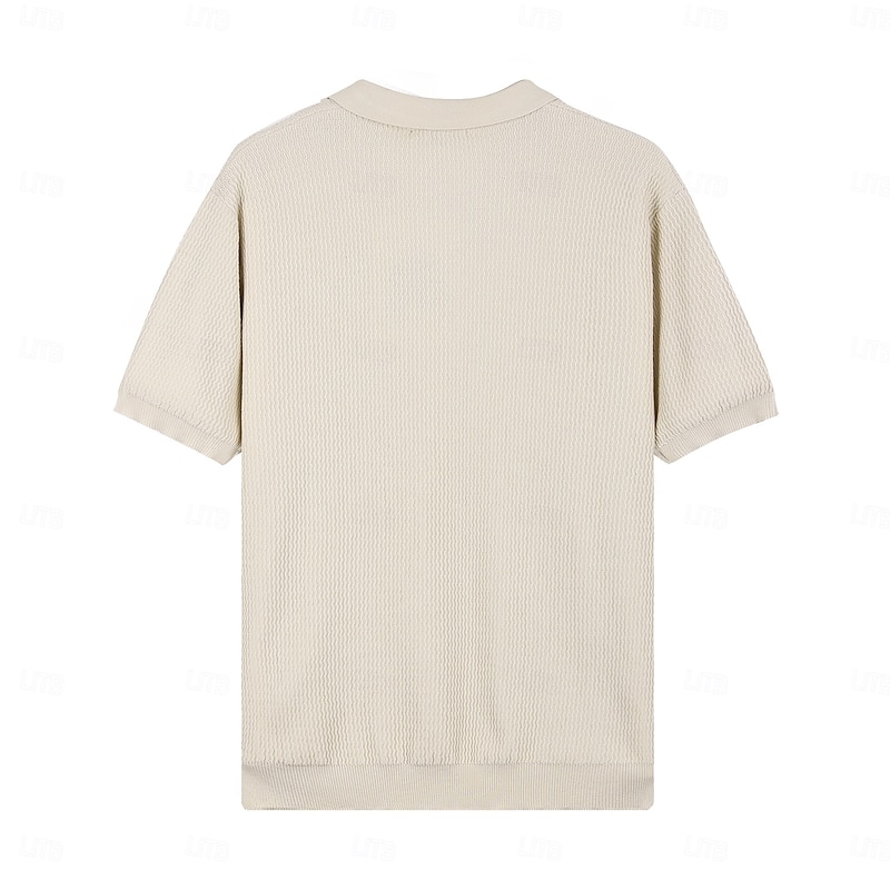 Men's Polo Knit Polo Sweater Business Casual V Neck Short Sleeve Formal Lines / Waves Novelty Summer All Seasons Black White Army Green Beige Coffee Polo 1