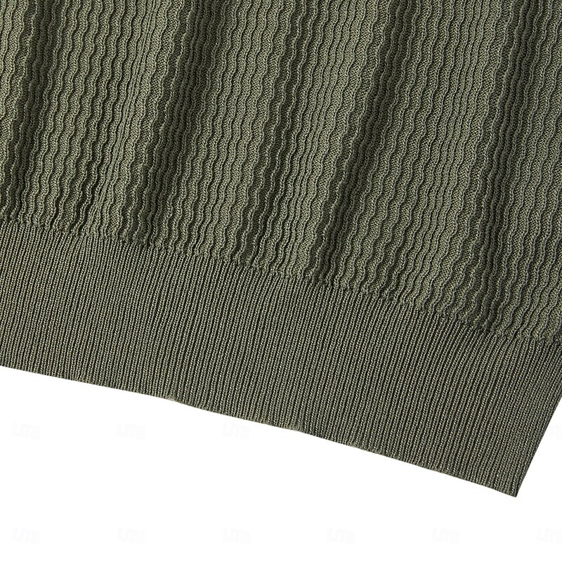Men's Polo Knit Polo Sweater Business Casual V Neck Short Sleeve Formal Lines / Waves Novelty Summer All Seasons Black White Army Green Beige Coffee Polo 11