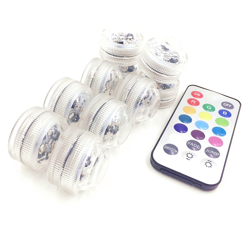 HOT ! 12pcs Underwater Submersible LED Pool Light Waterproof with Remote Control for Bath Tub Vase Aquarium Party Wedding Decor Battery Operated