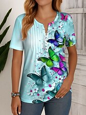Women's T Shirt Ombre Floral Graphic Vintage Stylish Classic Short Sleeve Round Neck Regular Tops Daily Weekend Beach Wear Smocked Buttons Print Red Purple Green Summer Spring 9