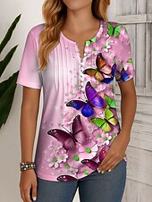 More information about Women's T Shirt Ombre Floral Graphic Vintage Stylish Classic Short Sleeve Round Neck Regular Tops Daily Weekend Beach Wear Smocked Buttons Print Red Purple Green Summer Spring