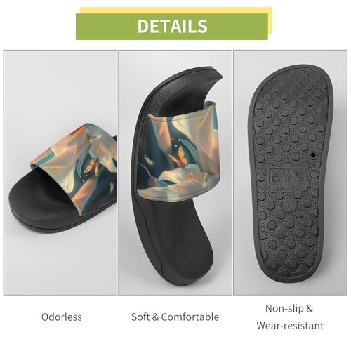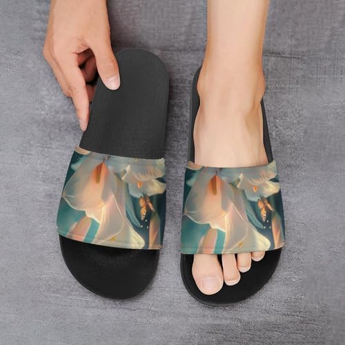 HOT ! Calla Lilies Bouquet Butterfly Slippers for Women Men Anti-Slip Shower Slides Open Toe Slippers for Home Outdoor Beach