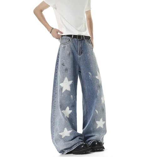 More information about Baggy Jeans for Men Women Y2K Star Graffiti Design Wide Leg Grunge Denim Pants Casual Fashion Harajuku Streetwear
