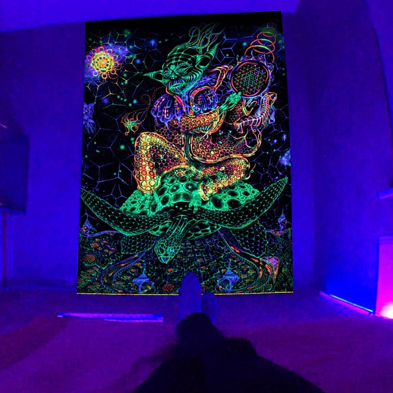 Highlights 【Durable Construction】 Crafted with high-quality polyester fabric, this tapestry is built to last. Its robust composition ensures that you can enjoy its beauty for years to come. 【Soft and Lightweight】 This tapestry is soft to the touch and lightweight, making it perfect for both indoor and outdoor use. 【Multiple Size Options】 Available in different sizes to accommodate any room's dimensions. 【Intricate Design】 The tapestry features a captivating design inspired by life itself. Its vivid imagery, crisp lines, and vibrant colors will become a conversation piece in any room. 【Versatility at Its Best】 Not just for wall decor, this tapestry can also double as a tablecloth or a picnic blanket, adding functional versatility to its artistic charm. 【Note】 1. Please allow 1-2cm (0.4"-0.8") deviations due to manual measurement. 2. Please understand the tiny color vary from the product due to different light and screen display. 3. UV/Black Light Reactive: This glow in the dark tapestry glows under blacklight / UV light. In normal light, the colors also are full and vivid.