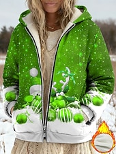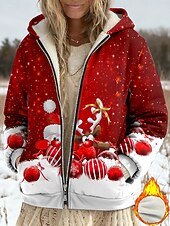More information about Women's Winter Coat Fleece Jacket Casual Jacket Warm Zipper Pocket Print Fashion Casual Christmas Street Casual Regular Hooded Regular Fit Long Sleeve Outerwear Red Blue Purple Spring Fall