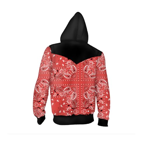 White Bandana Jacket for Men Bandanas 3D Print Hip hop Novelty Red Colorful Zipper Hoodies Women Fashion Jacket 5