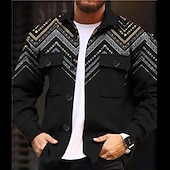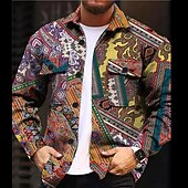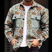 More information about Men's Shirt Shirt Jacket Long Sleeve Vintage Daily Wear Going out Weekend Fall & Winter Turndown Pocket Print Button-Down Black Purple Green
