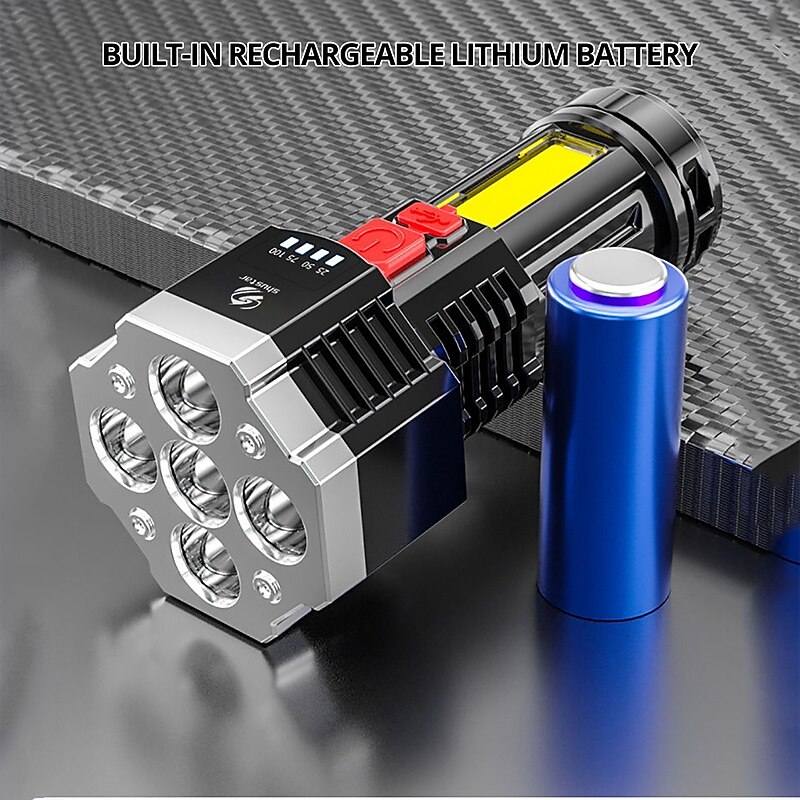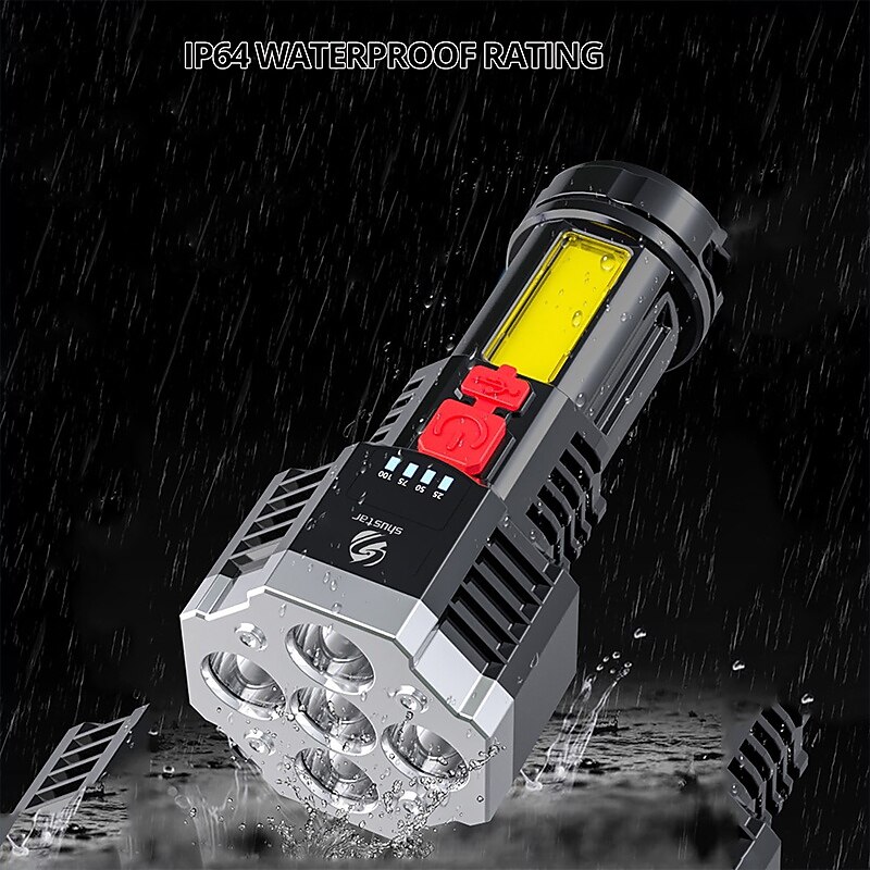 - Features: Super high-power bright flashlight with COB side light for added versatility, USB charging for convenience, life-level waterproofing for reliable usage in various environments, compression-resistant and waterproof body for durability, smart shifting for ease of use, and multi-mode lighting for different lighting needs.