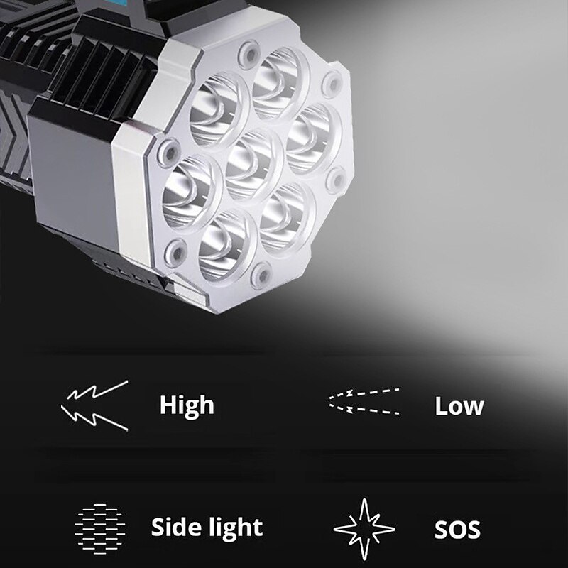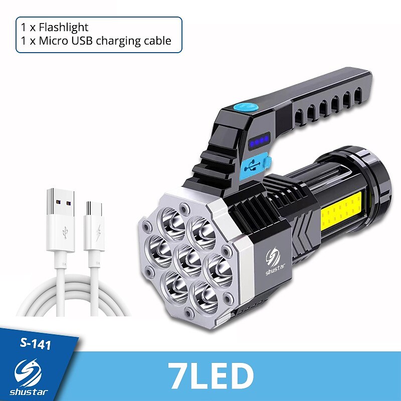 High-power 7 LED flashlight torch with Cob side light light outdoor lighting USB rechargeable waterproof work light powerful fishing light