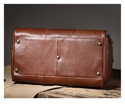 Travel Bag Men's Travel Bag Genuine Leather Luxury Luggage Bag Women's Weekend Duffle Bag Vintage Business Handbag(Coffee) 7