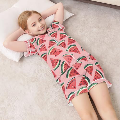 ALAZA Cartoon Watermelon Slices Satin Pajamas Set Short Sleeve Button Down Sleepwear Summer Pjs 2 Piece 1