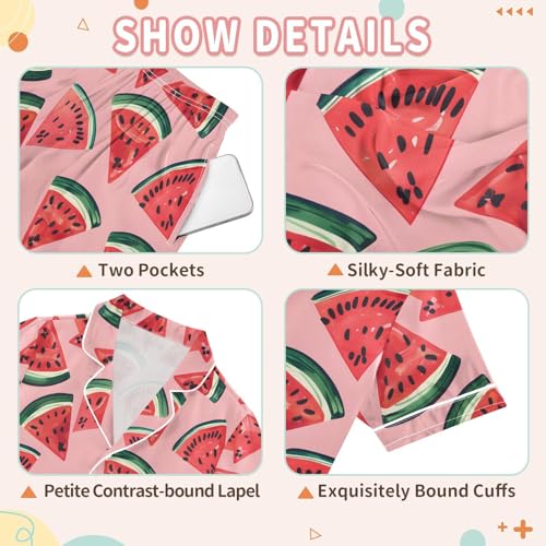 ALAZA Cartoon Watermelon Slices Satin Pajamas Set Short Sleeve Button Down Sleepwear Summer Pjs 2 Piece 6