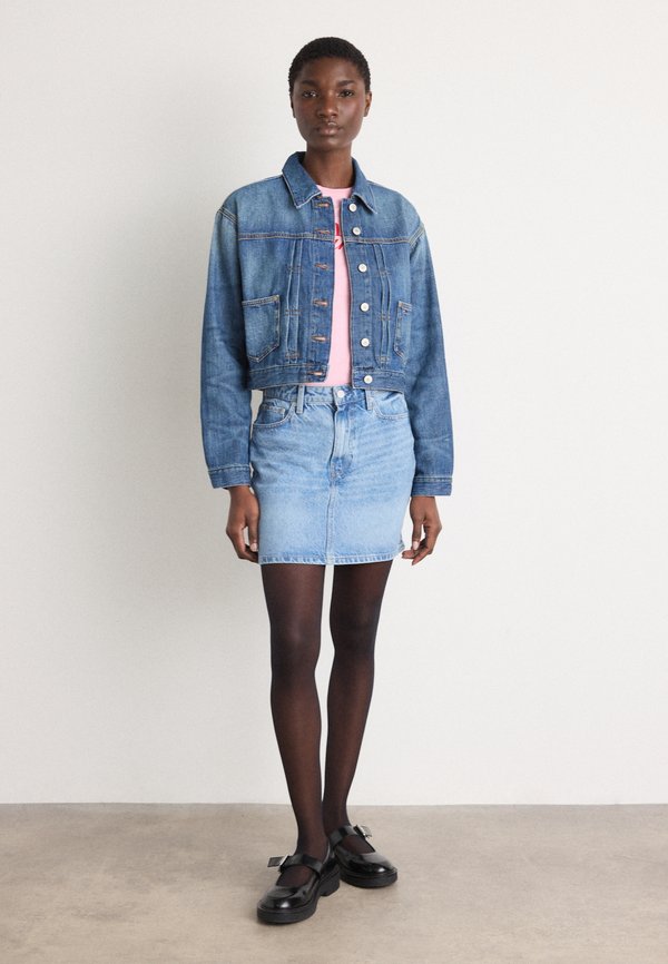 PLEATED TRUCKER JACKET  - Denim jacket - denim medium 1