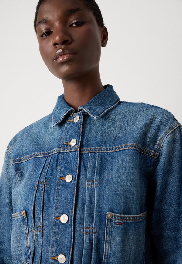PLEATED TRUCKER JACKET  - Denim jacket - denim medium 7