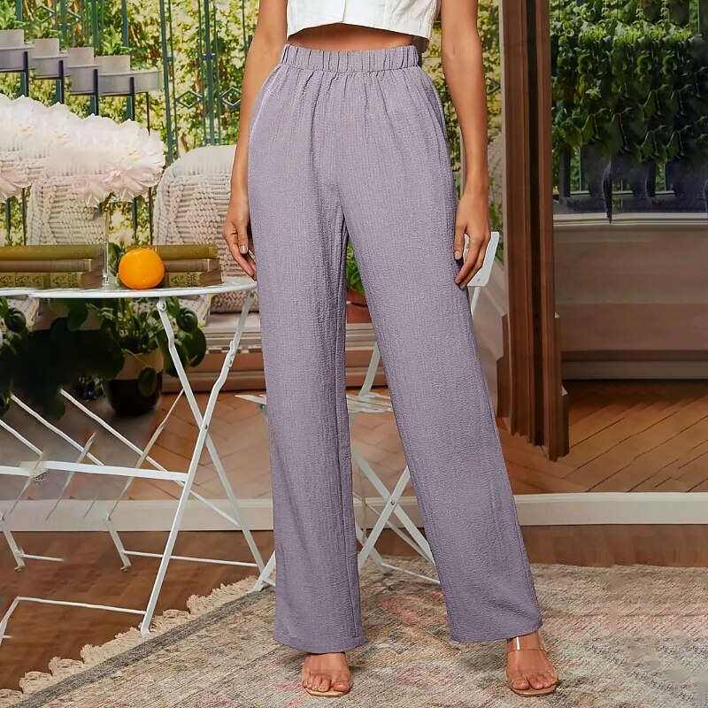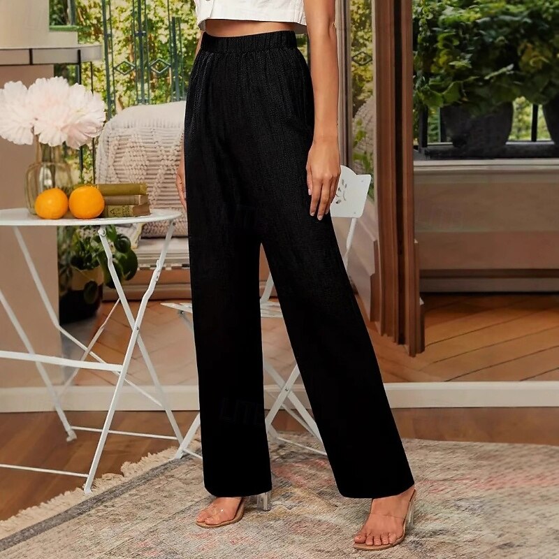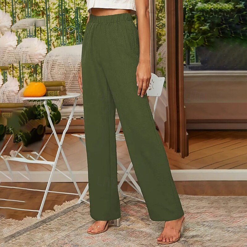 More information about Women's Cotton Linen Pants Slacks Streetwear Casual Full Length Natural Plain Elastic Waist Comfy Comfortable Casual Daily Weekend Grey Navy Black Army Green Summer Regular Fit
