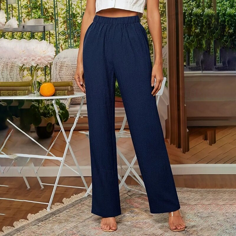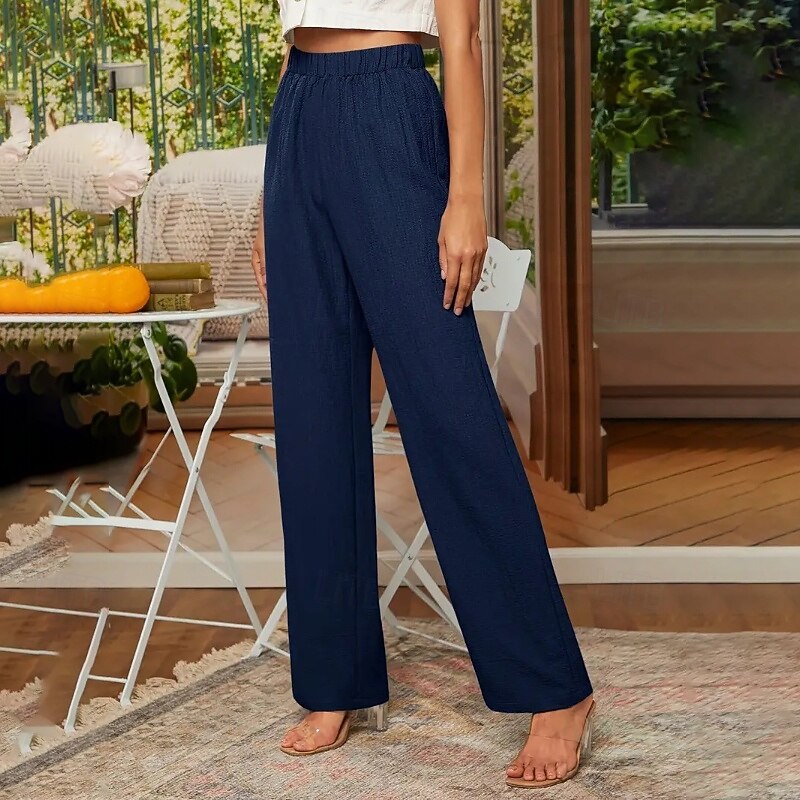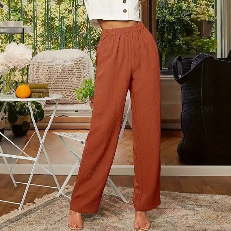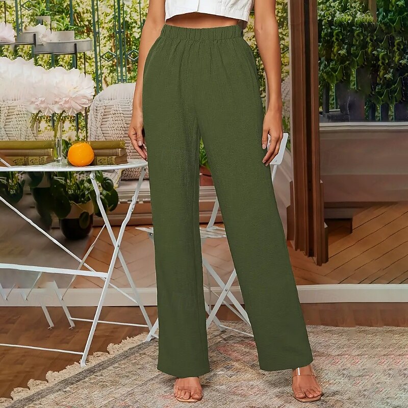 HOT ! Women's Cotton Linen Pants Slacks Streetwear Casual Full Length Natural Plain Elastic Waist Comfy Comfortable Casual Daily Weekend Grey Navy Black Army Green Summer Regular Fit