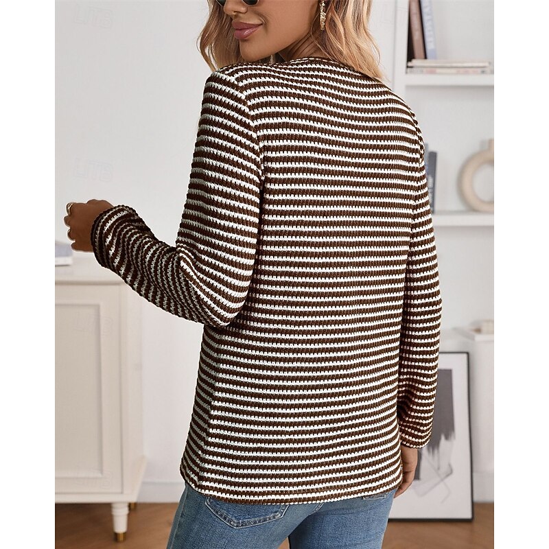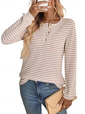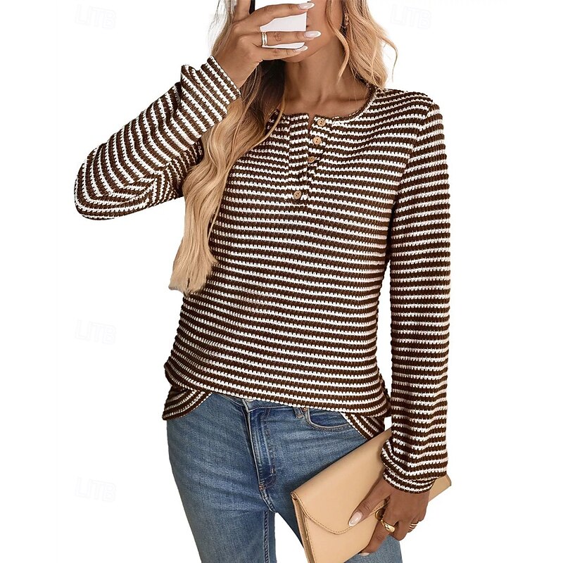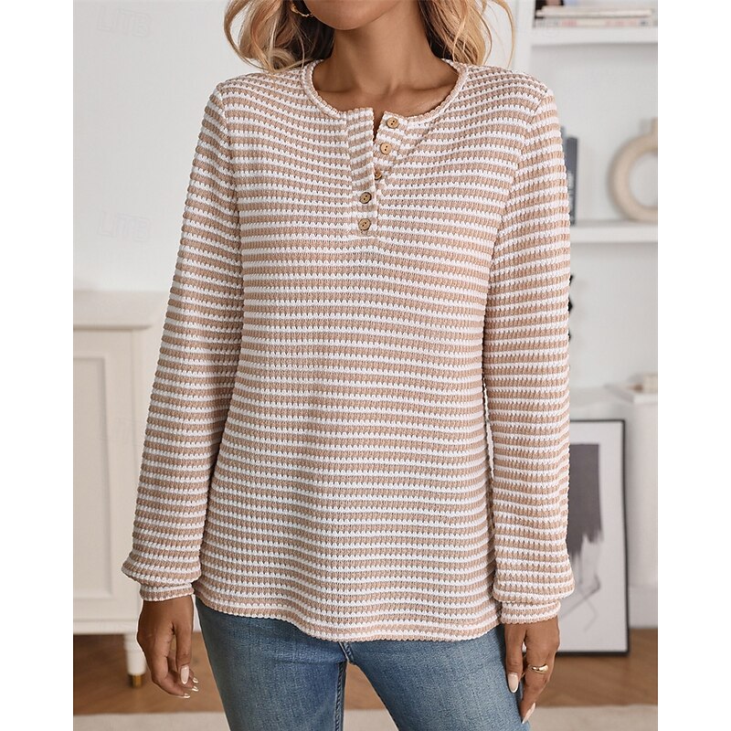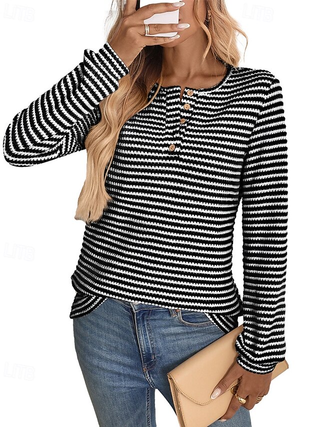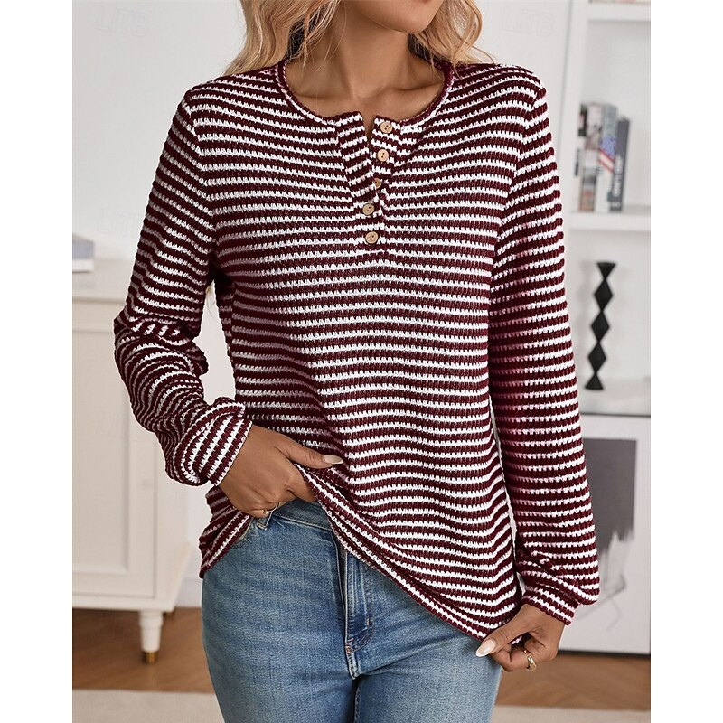 More information about Women's Sweater Pullover Daily Stylish Casual Color Block Ribbed Crew Neck Buttons Knitted Long Sleeve Regular Tops Knit Daily Holiday Going out Black Wine Fall Winter