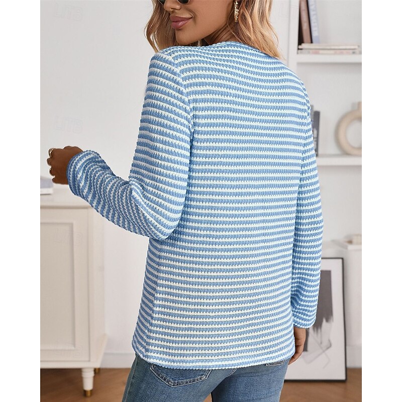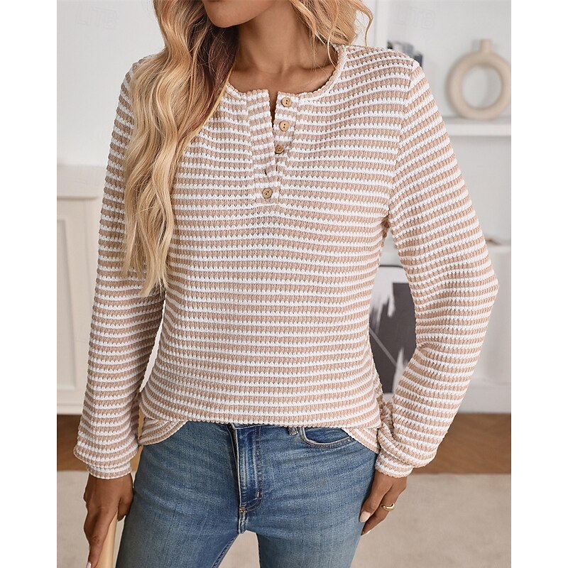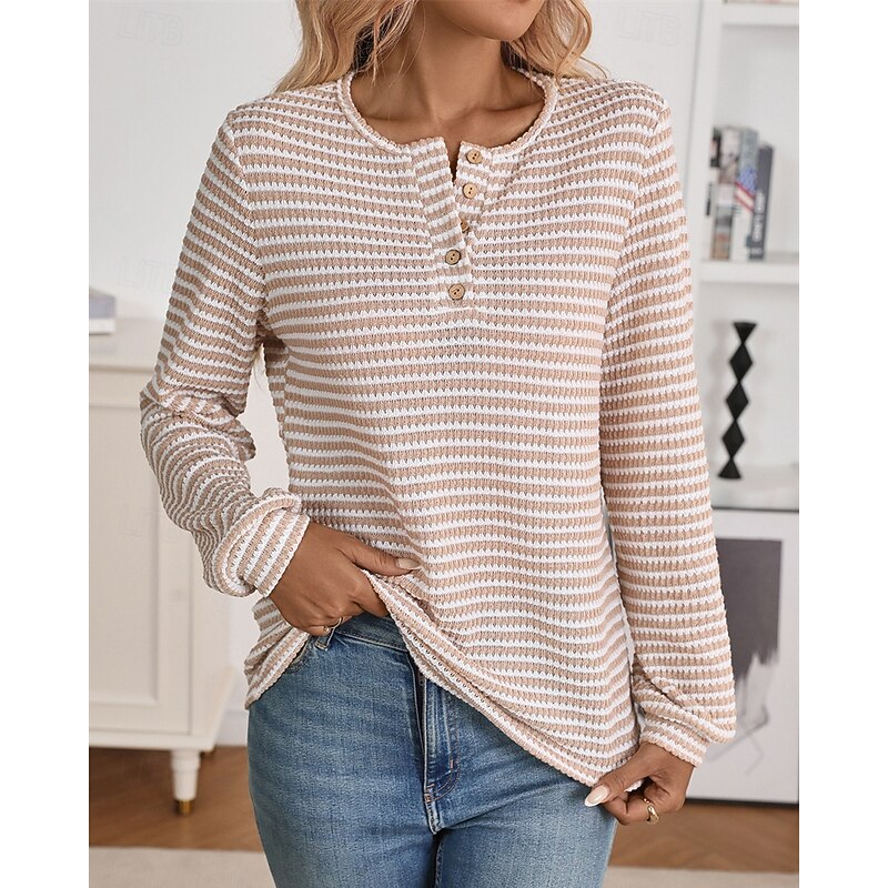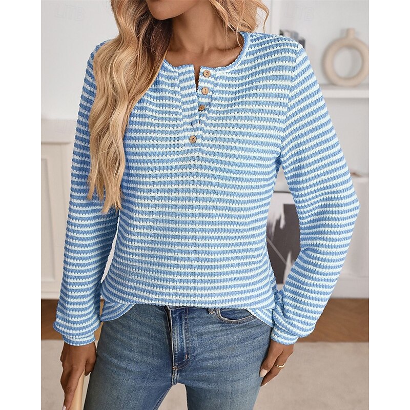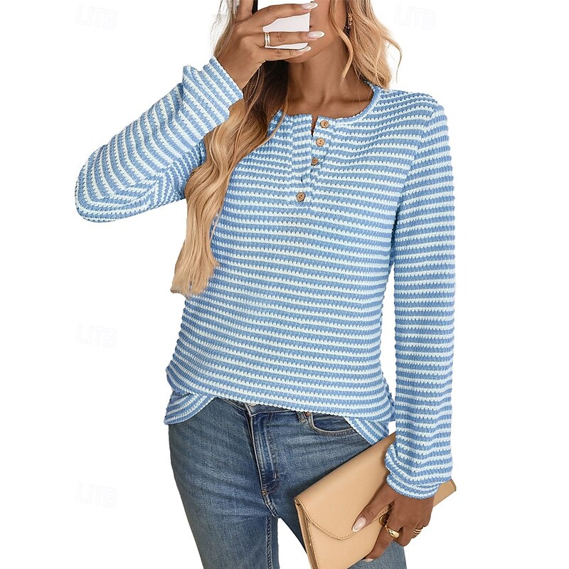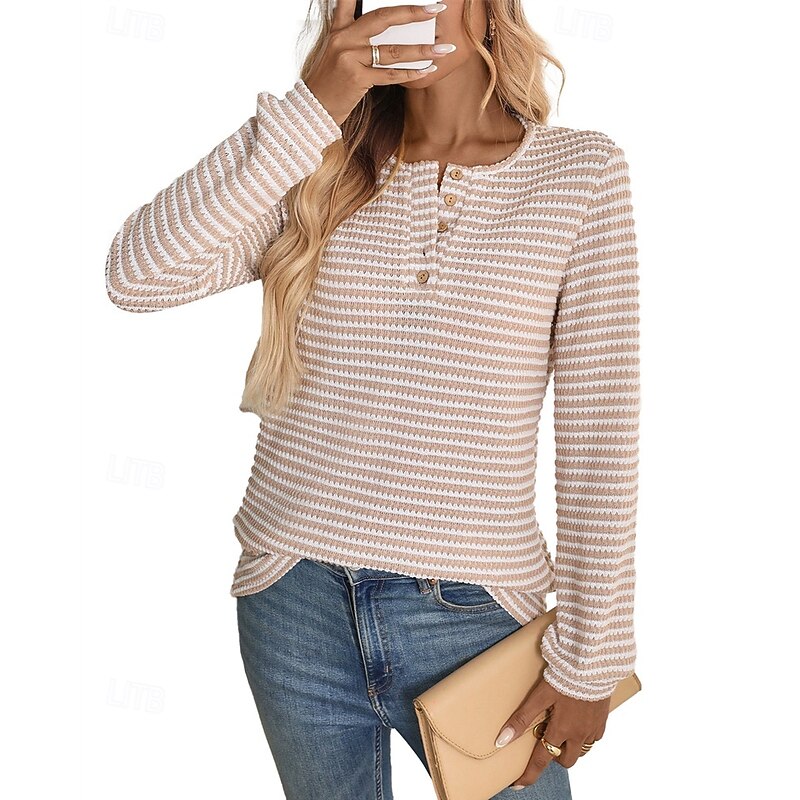 Highlights - Stay cozy and stylish in this fall/winter sweater - Made of high-quality polyester with long sleeves for extra warmth - Designed for women who love a casual yet stylish look - Perfect for daily wear, featuring a trendy color block pattern - Comfortable crew neck and ribbed knit style with button details