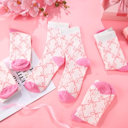 5 Pairs Coquette Socks for Women Pink Bow Socks Set Cotton Breathable Cute Mid Stuff Gift for Sleeping Home Women Girl 6