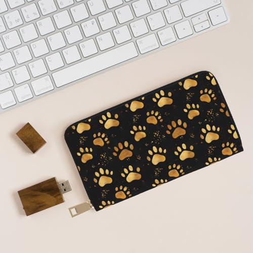 HOT ! Dog Paw Gold Print Wallet Women Men, Long PU Leather Wallets for Women, Cute Womens Travel Wallet Purse Pouch with Zipper Pocket
