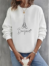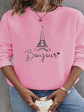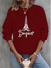 : The design showcases a chic graphic and letter pattern, with the Eiffel Tower and the word "Bonjour" adding a playful yet elegant Parisian touch. The burgundy hoodie pullover is available in multiple colors, including white, black, pink, and wine, allowing for versatile styling options.