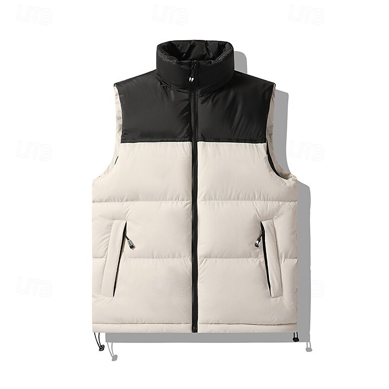 More information about Men's Down Vest Puffer Vest Vest Gilet Daily Date Vacation Fashion Casual Fall & Winter Patchwork Pocket Polyester Thermal Warm Comfortable Color Block Zipper Stand Collar Regular Fit Black Blue