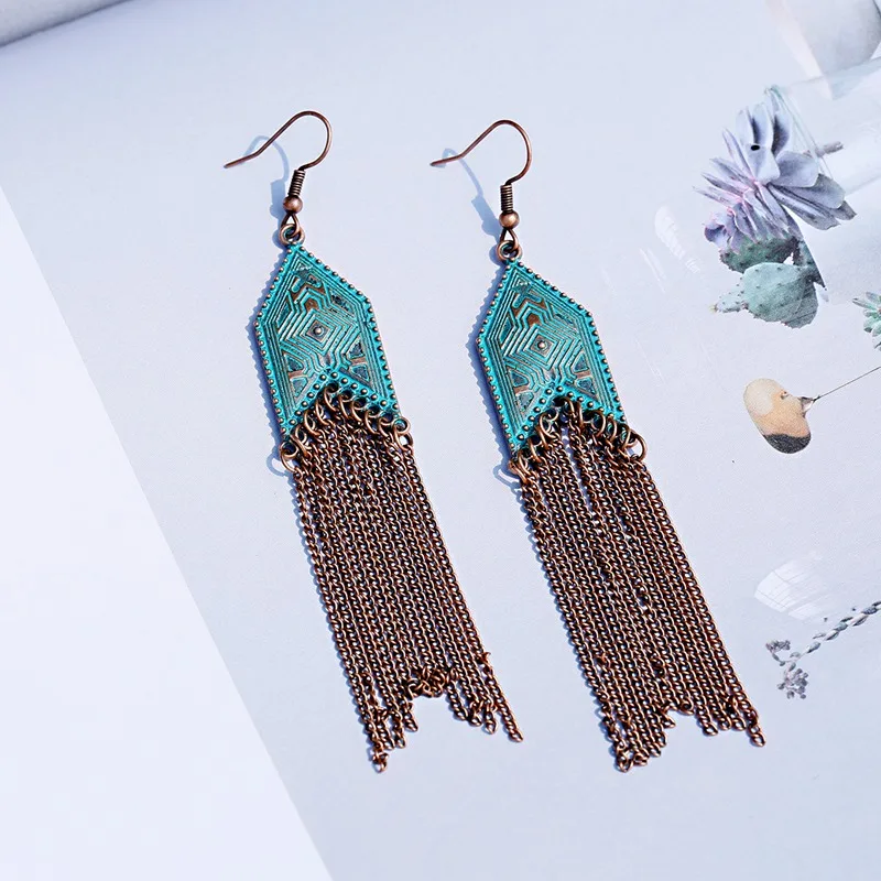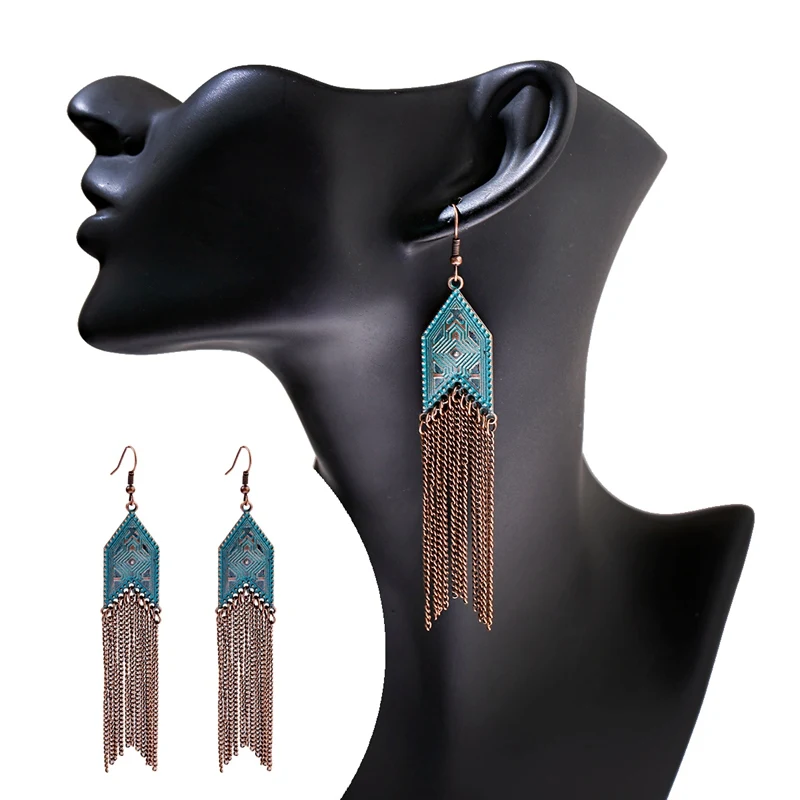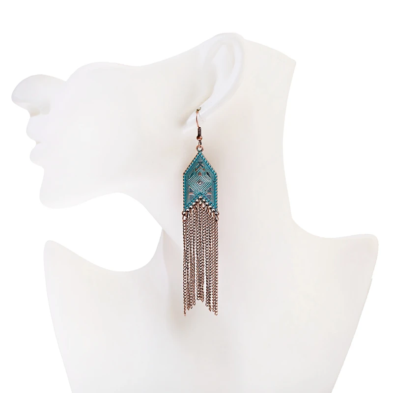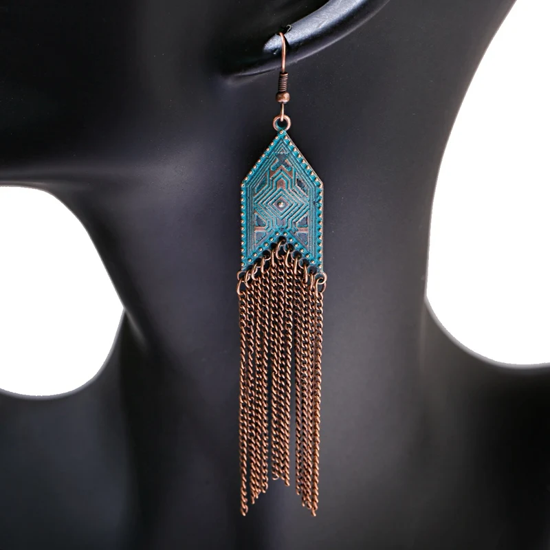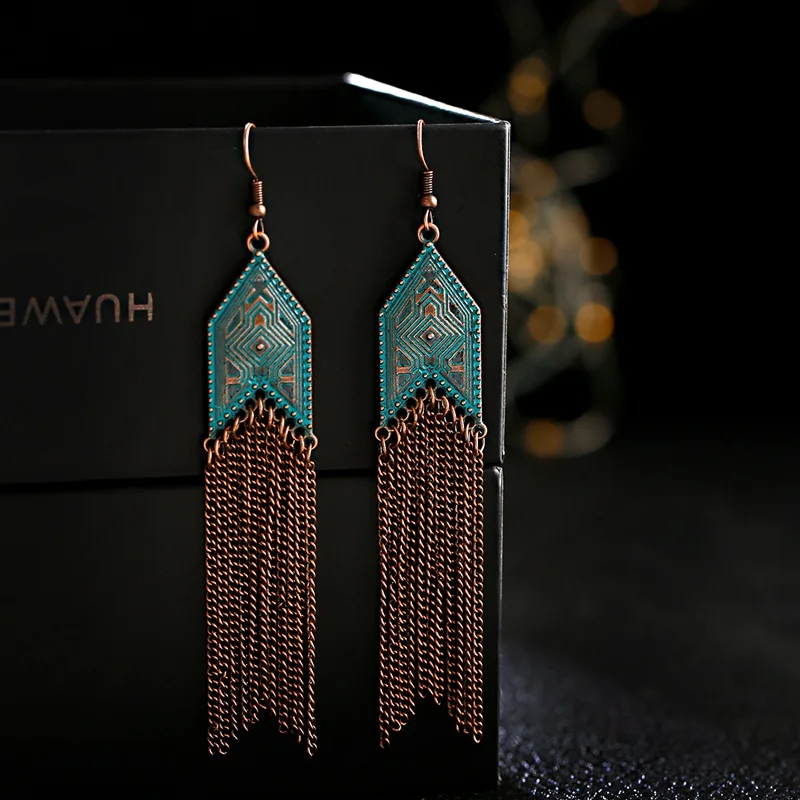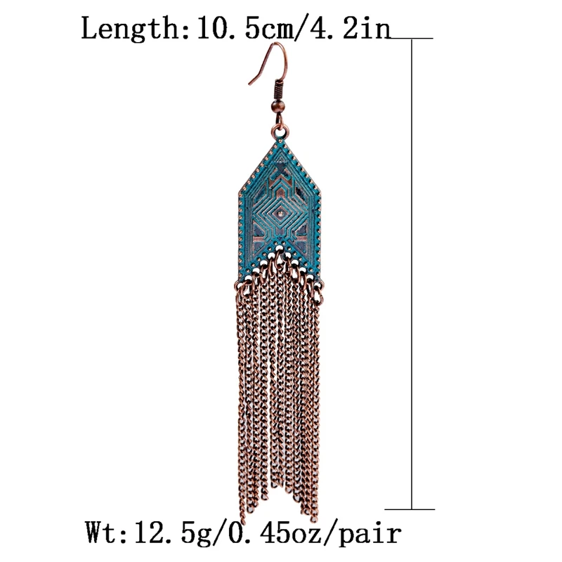 Vintage Bronze Arrow Alloy Dangle Earrings For Women Trible Boho Retro Long Chain Tassel Indian Jhumka Earrings