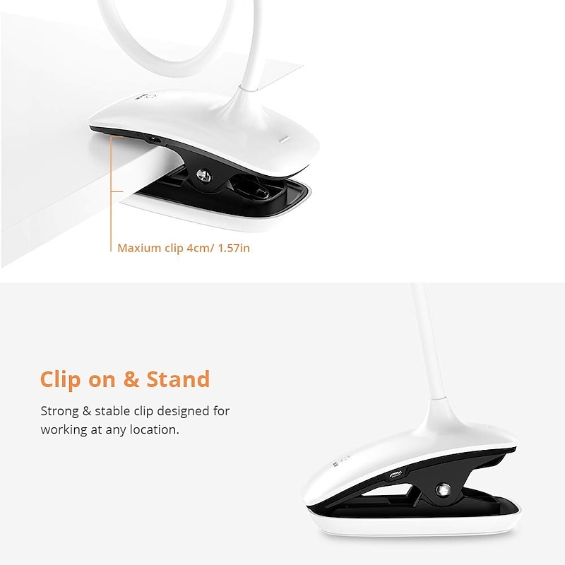 LED Ring Clip On Book Reading Bed Light Lamp Rechargeable Portable Reading 2W Adjustable Lightness Flexible 360° USB for Makeup Mirror Computer 7