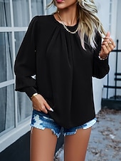 More information about Women's Shirt Texture Blouse Summer Tops Plain Daily Stylish Basic Long Sleeve Lantern Sleeve Crew Neck Regular Tops Work Daily Holiday Ruched Black Wine Blue Spring Fall