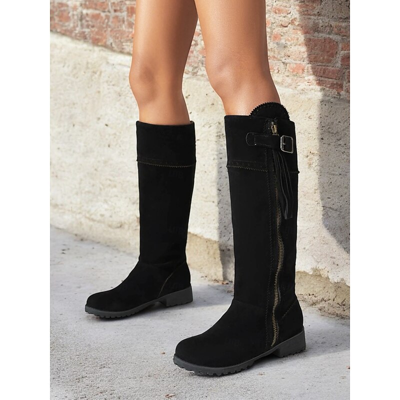 More information about Women's Blue Faux Suede Knee-High Boots with Side Zipper and Tassel Detail, Vintage Style for Fall and Winter Casual Wear
