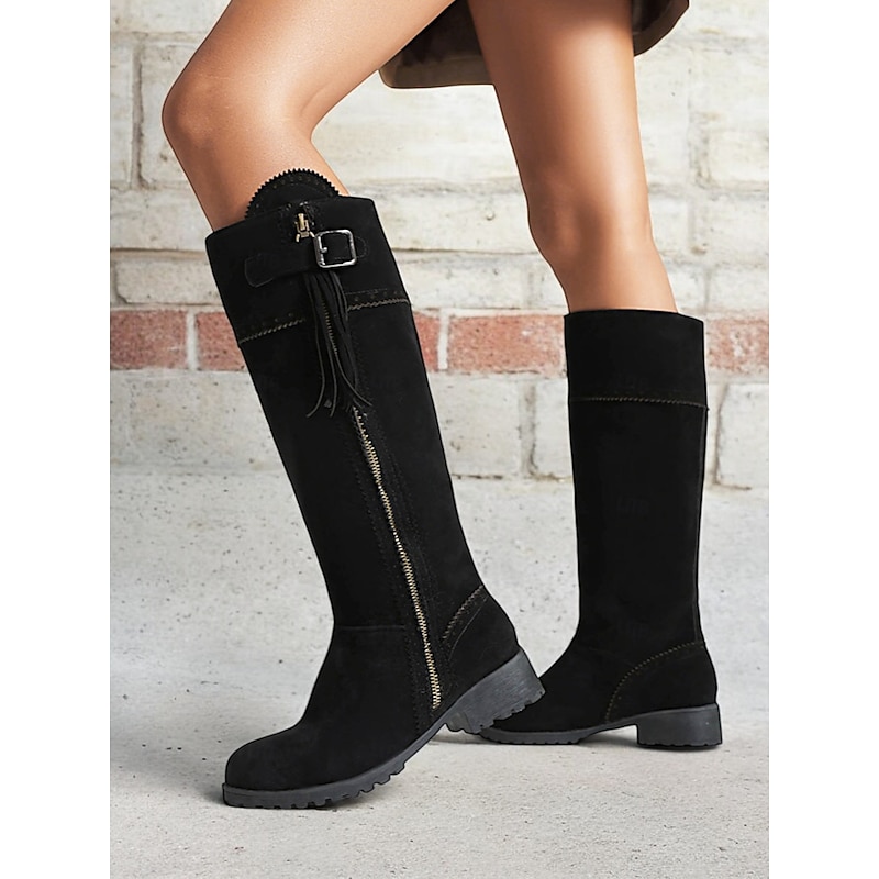 : These boots boast a sleek knee-high design with a moderate chunky heel for comfort and elegance. The round toe shape offers ample space, making them ideal for daily wear and work, while the rugged yet sophisticated structure is suitable for both casual and semi-formal occasions.