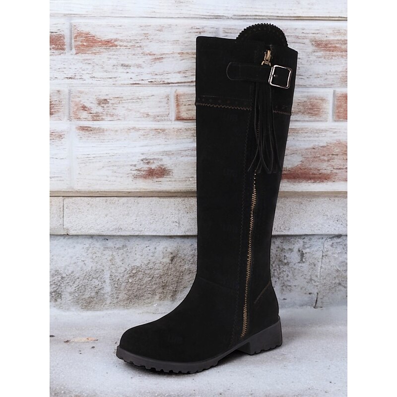 : Featuring a decorative buckle strap with long tassels, these boots add a playful yet fashionable element to your wardrobe. The full-length side zipper allows for easy wearability and a secure fit, while intricate edge detailing enhances visual appeal with a touch of elegance.