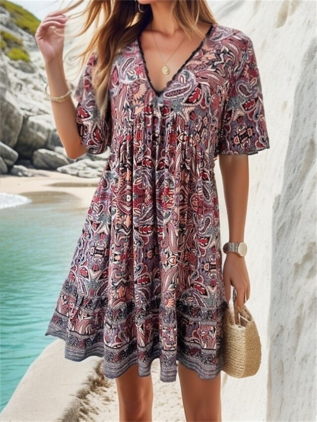 HOT ! Women's Long Dress Maxi Dress Casual Dress A Line Dress Elegant Stylish Casual Vacation Daily Loose Fit Graphic Short Sleeve V Neck Black Yellow Blue Green Summer Spring