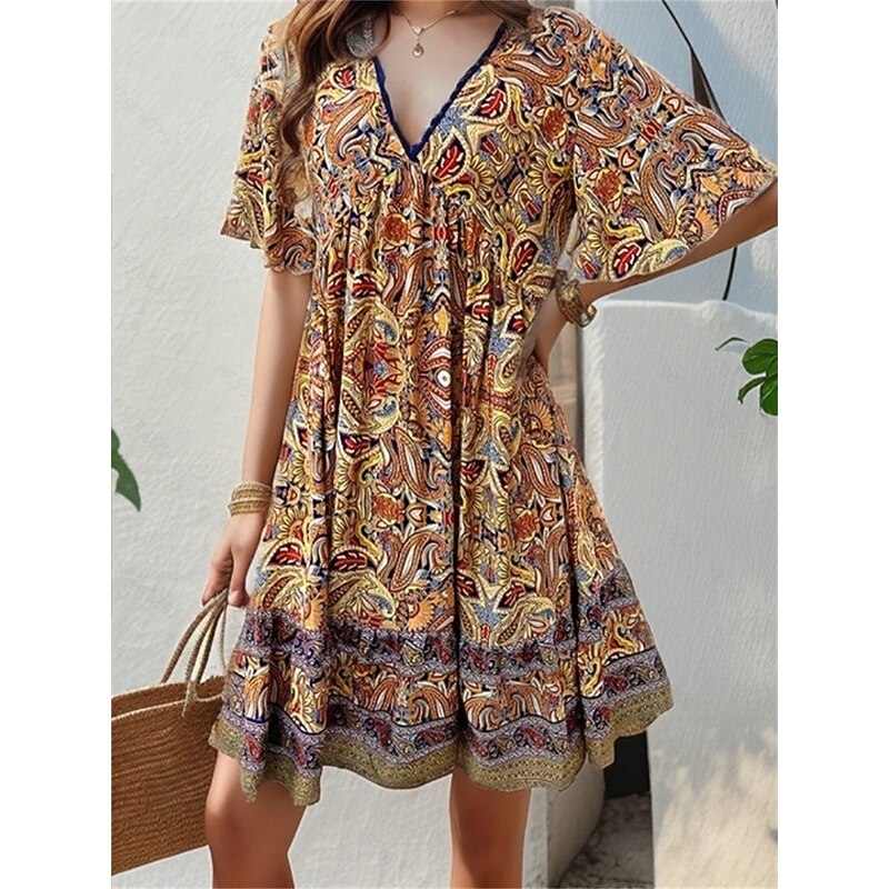 More information about Women's Long Dress Maxi Dress Casual Dress A Line Dress Elegant Stylish Casual Vacation Daily Loose Fit Graphic Short Sleeve V Neck Black Yellow Blue Green Summer Spring