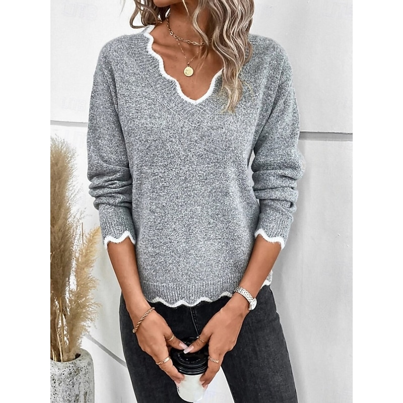 $35.99 - Women's Sweater Casual Soft Pure Color Ribbed V Neck Knitted Long Sleeve Regular Tops Knit Outdoor Daily Weekend Khaki Gray Fall Winter 2025. Shop for cheap Plain Pullover online? Buy at lightinthebox.com on sale today!