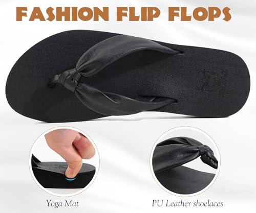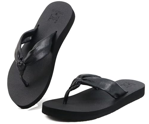 KuaiLu Womens Flip Flops With Arch Support Comfortable Yoga Mat Cushion Thong Leather Sandals for Ladies Fashion Slip On Summer Beach Walking Slides Indoor Outdoor Travel Orthotic Slippers 6