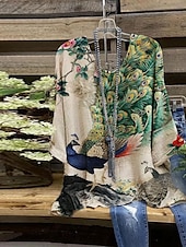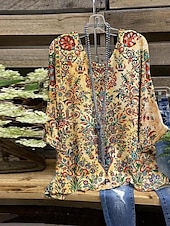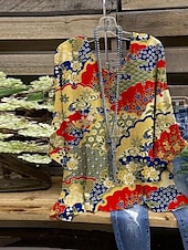 More information about Women's Shirt Floral Stylish 3/4 Length Sleeve Crew Neck Regular Tops Daily Holiday Print Yellow Wine Green Summer