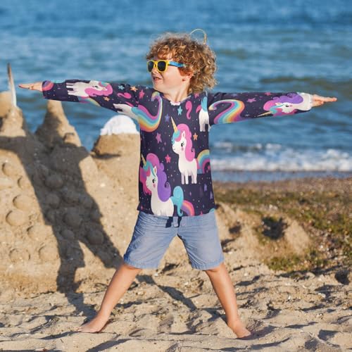 Boys Rash Guard Swim Shirt Long Sleeve UPF+ 50 Sun Shirts Quick Dry Shirt Pink Purple Hair Unicorn for Toddler Kids 5