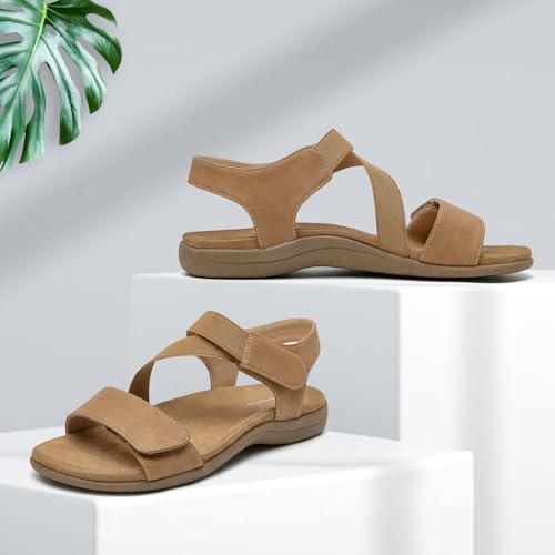SelenePair Women's Arch Support Walking Flat Sandals Comfort Orthotic Slides With Hook And Loop Fasteners 5