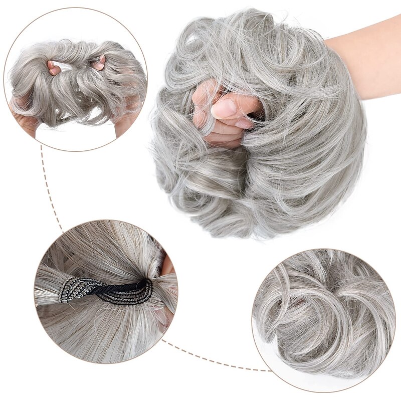 2PCS Updo Messy Hair Bun Curly Wavy Ponytail Extensions Hairpieces Hair Scrunchies Wraps Chignon for Women Girls (Plus Limited Hair Bun with Longer Hair Length Grey/Brown/Silver/White Mixed) 11