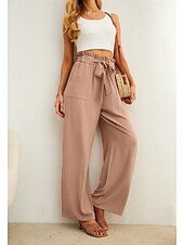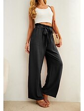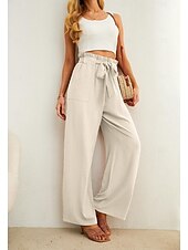 Highlights [Fabric] : Crafted from a smooth and lightweight polyester blend, these women's wide-leg pants offer durability and easy maintenance. The gentle stretch ensures a comfortable and breathable fit, perfect for a variety of occasions. [Fit] : The high-waist design with a loose, wide-leg cut provides a relaxed and sophisticated silhouette. These pants are designed for a chic and casual style, suitable for spring and fall wear. [Design Highlights] : Featuring an adjustable lace-up knot and deep side pockets, these pants combine functionality with fashion. The elastic waistband ensures a flexible fit, enhancing comfort throughout the day. [Occasions] : Ideal for streetwear and outdoor activities, these pants are well-suited for both daytime adventures and laid-back evening outings. Their versatile style makes them a fashionable choice for any casual setting. [Sizes] : Available in sizes S to 2XL, these pants cater to a wide range of body types, ensuring a comfortable and stylish option for any wardrobe.